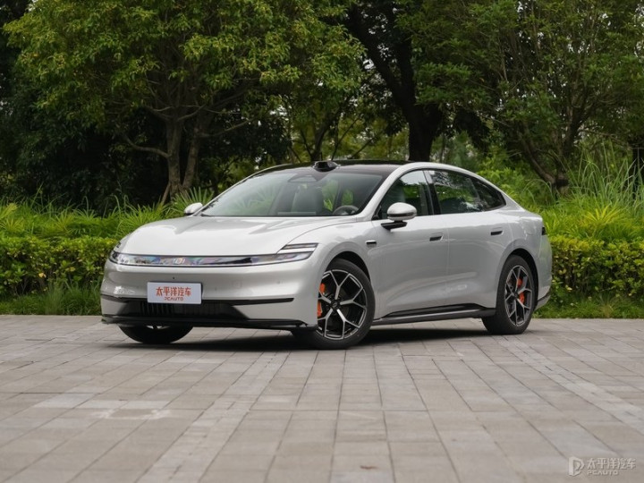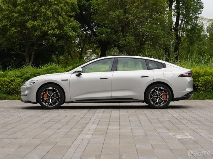 车身侧面采用溜背式造型,配有无边框车门、无边框后视镜、隐藏式水切、半隐藏式门把手、19英寸五辐花瓣式轮毂等时尚设计,视觉效果非常高级。
